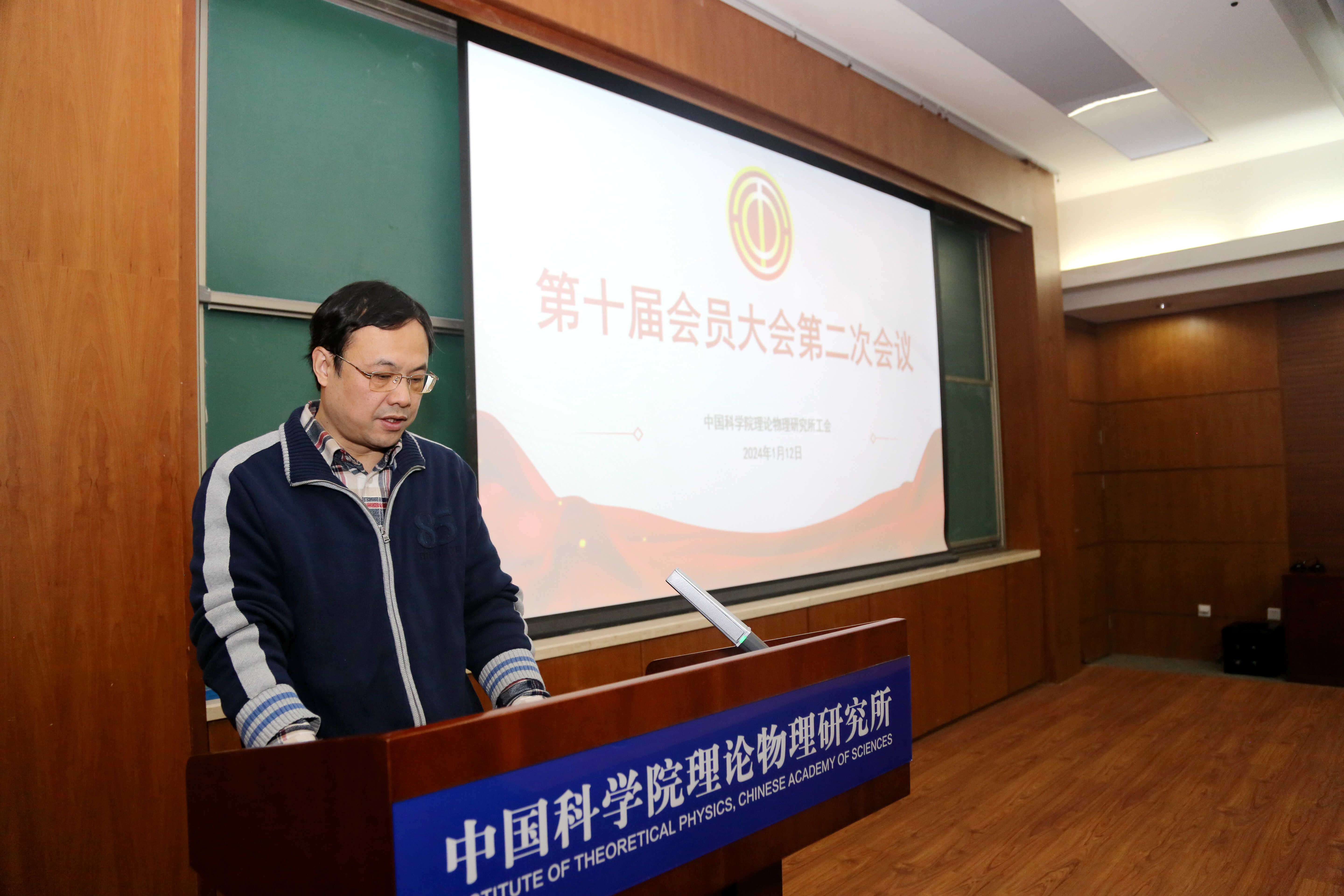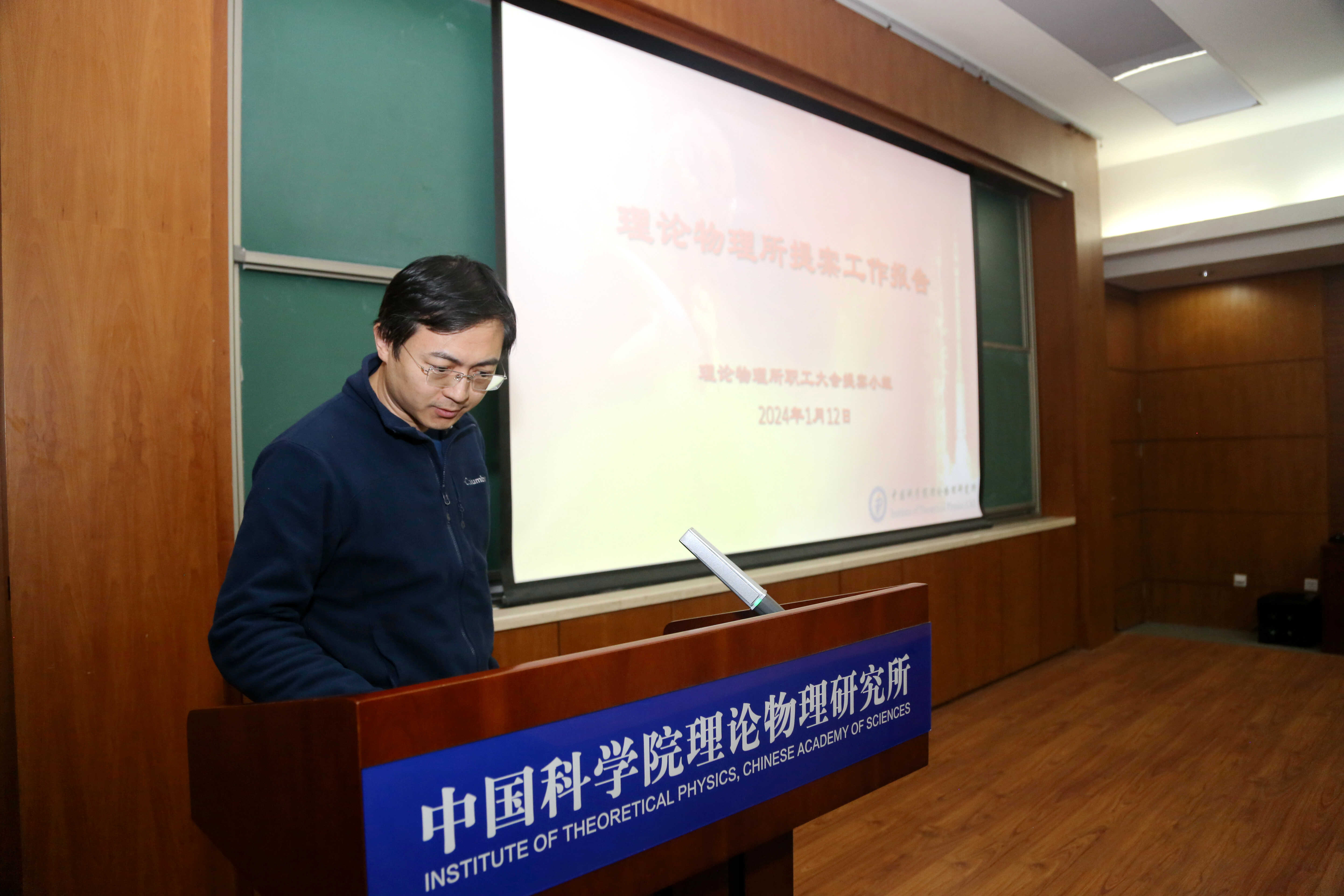 2024年1月12日,理论物理所召开了2024年第一次职工大会全体会议。全所职工、博士后共80余人参加了会议。会议听取了2023年度研究所工作总结及2024年度重点工作的报告、2023年度职工提案工作报告、2023年度工会工作报告以及工会经费审查工作报告。大会由党委副书记、纪委书记樊志军主持。