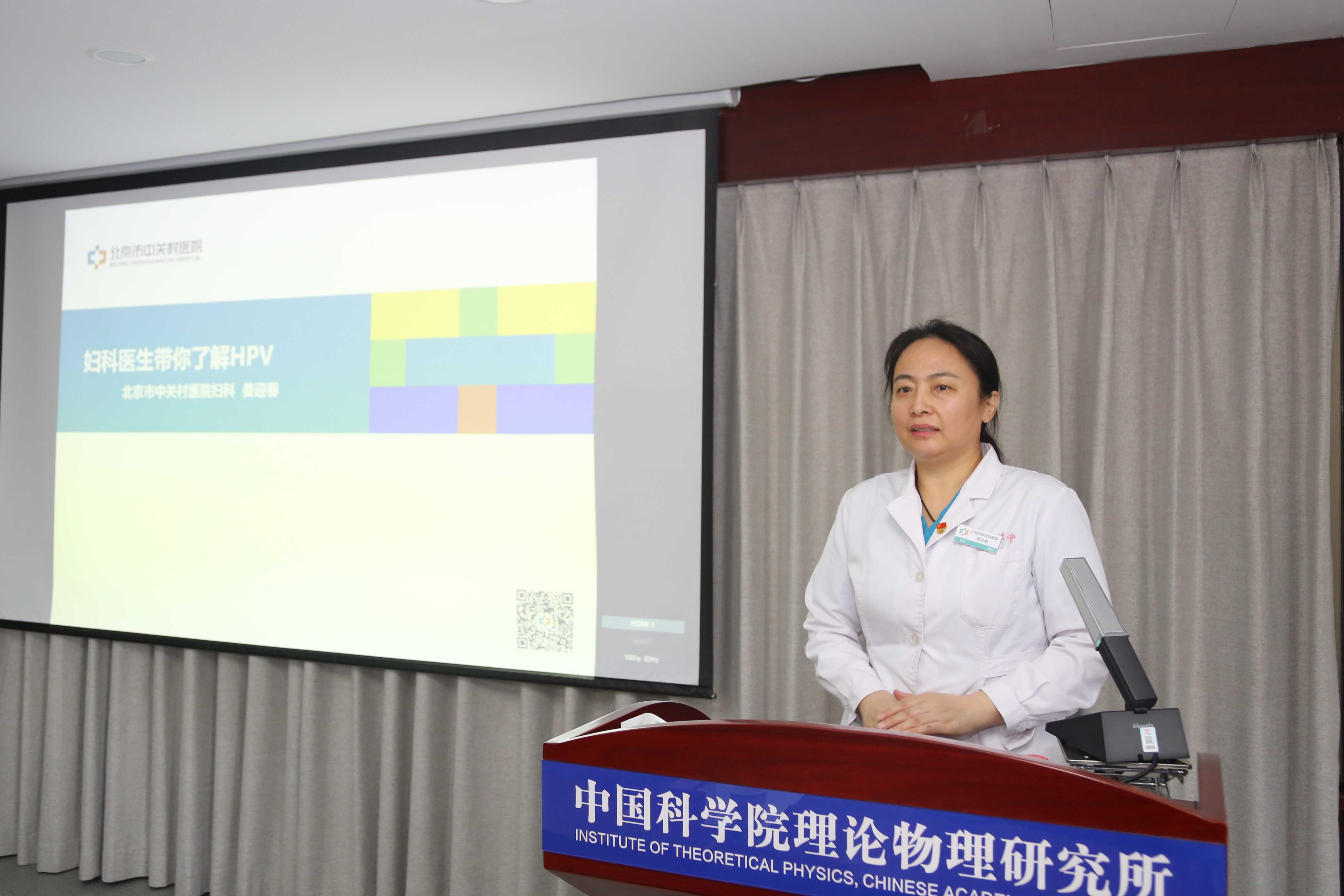 理论物理所党委书记、副所长樊志军同志为本次活动致辞。她代表所党委、所领导班子对全所女职工表达了亲切的节日问候,对女职工在研究所发展中做出的重要贡献表示了诚挚感谢,对中关村医院专家团队的到来表示了热烈欢迎。樊志军书记勉励全所女职工要巾帼不让须眉,发扬自尊、自信、自立、自强的精神,立足本职岗位建功立业,以奋斗诠释担当,为理论物理所高质量发展贡献巾帼力量。