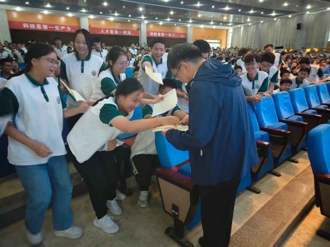 全国政协常委常凯在科普讲座后给学生写寄语。郭淼 摄