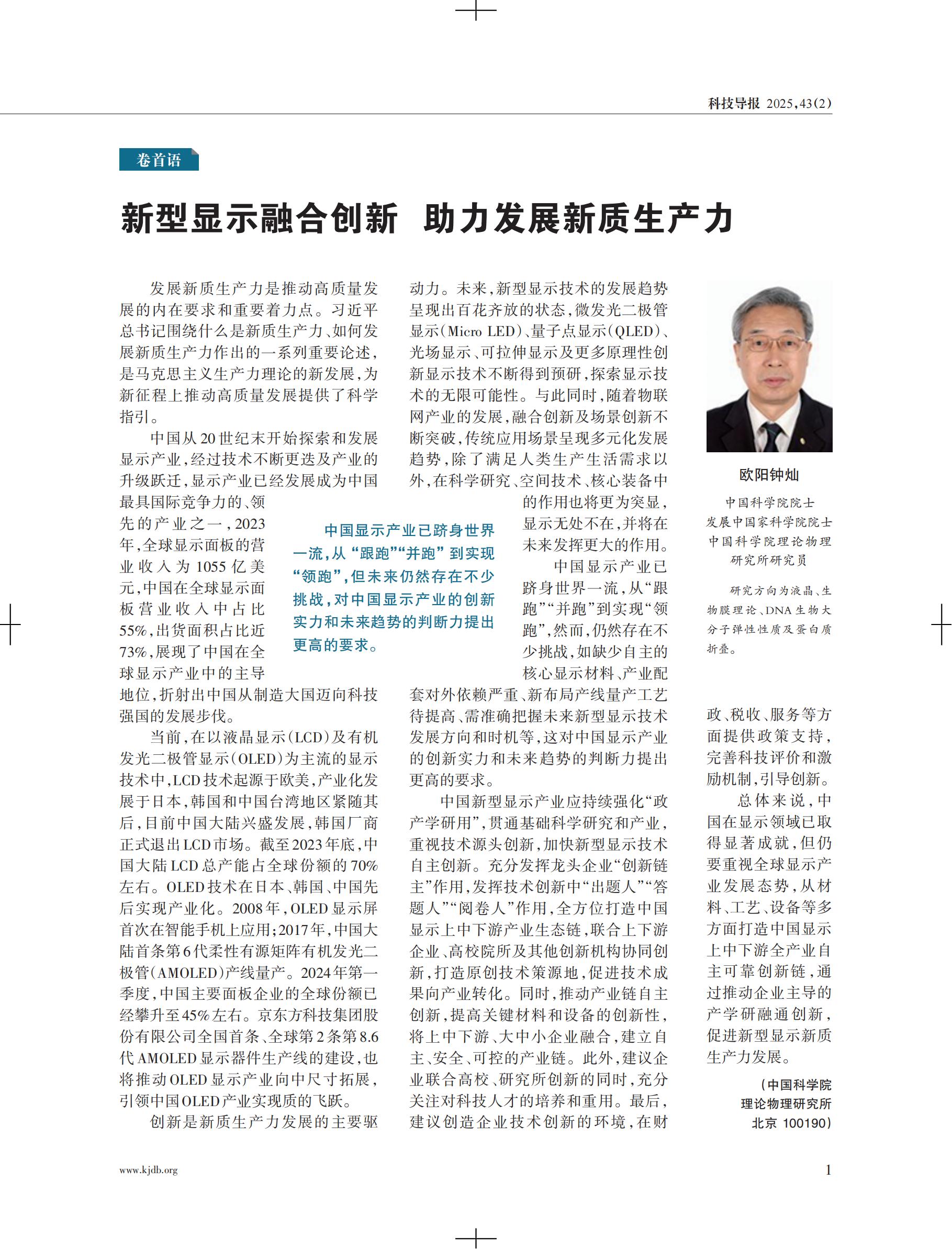 欧阳钟灿:新型显示融合创新助力发展新质生产力