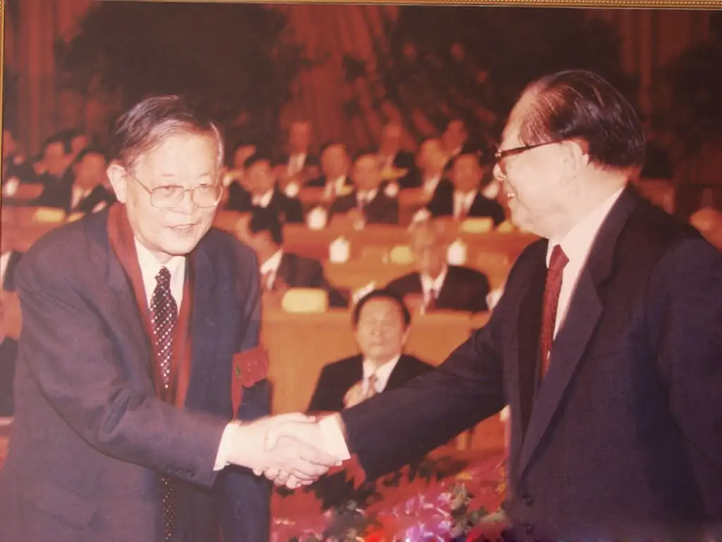 时任国家主席江泽民授予周光召“两弹一星”功勋奖章(1999 年9 月)