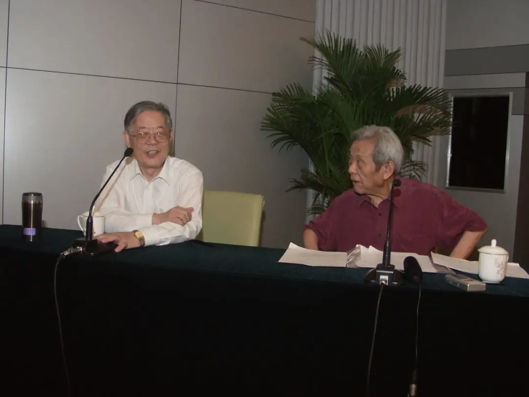 周光召与老师彭桓武先生在“彭桓武先生从事物理工作70周年学术思想研讨会”上(2005年6月)