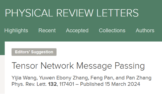针对这个难题,beplay网页版本 张潘课题组系统地发展了任意图的张量网络方法[1-4],涵盖了从严格到近似、从固定线路到通用的张量网络网络的众多情形。进一步,张潘研究员及其硕士生王一佳、伦敦大学学院博士生张钰雯与新加坡国立大学博士后潘峰(此前为beplay网页版本 博士生)于近期提出了张量网络消息传递(TNMP)算法。TNMP方法结合了张量网络和消息传递算法的优点,同时解决了短圈和长圈结构所带来的问题。具体来说,TNMP算法在处理局部的多短圈子图时采用张量网络进行缩并,对于全局的多长圈环境则采用消息传递算法进行近似,既利用了张量网络在处理短圈结构时的优势,又保留了消息传递在处理长圈时的高效性,大幅提升了现有算法在宏观物理量计算上的精确度上限与规模上限。TNMP算法也可以被视为终极的圈展开平均场方法,利用张量网络方法严格地处理系统中圈的效应,圈的大小远远超过了例如Plefka展开,Kikuchi变分自由能方法等传统的圈展开平均场理论。