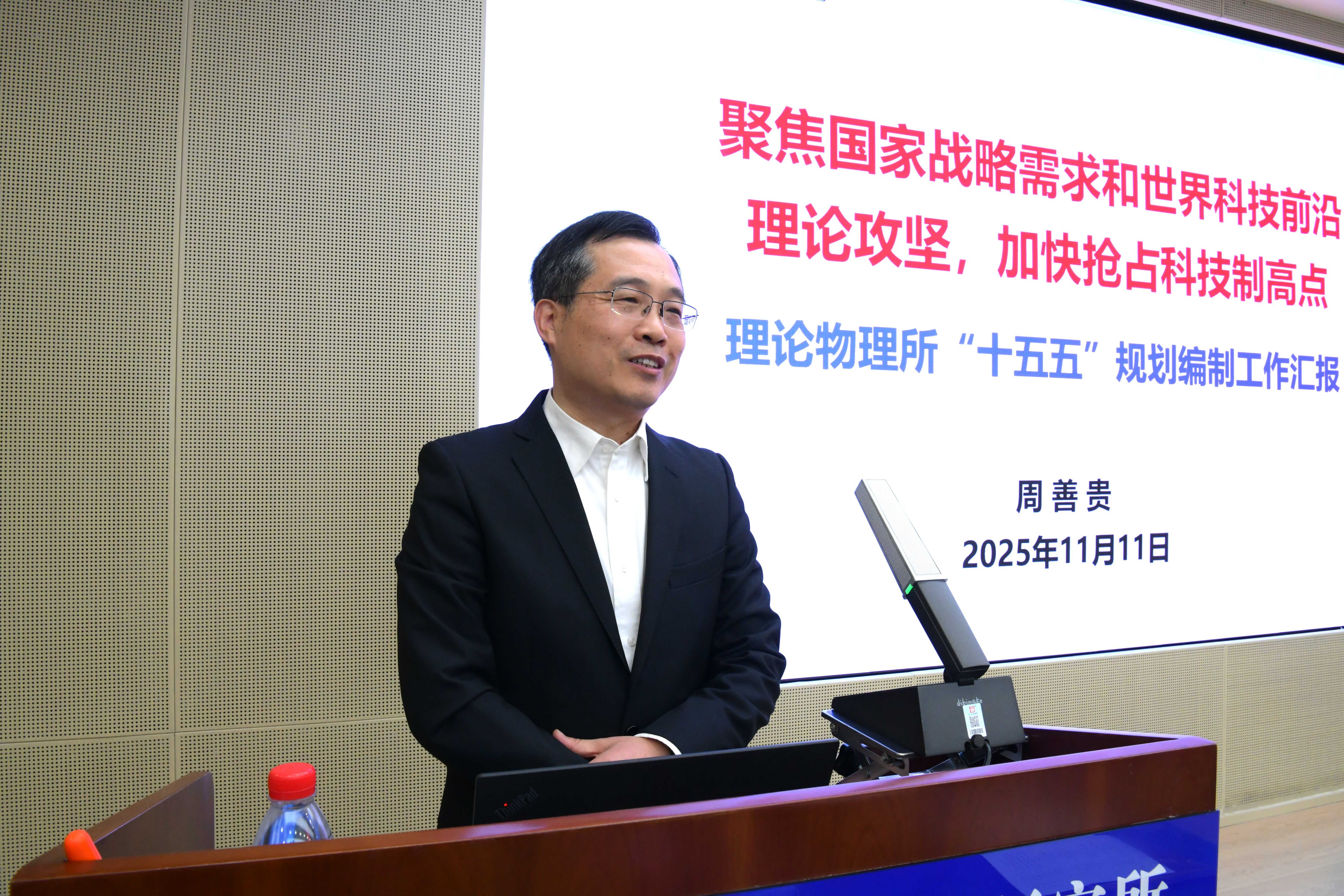 周善贵代表所领导班子作表态发言,承诺将全面梳理落实委员们的建议,进一步完善“十五五”发展规划,推动各项任务落地见效。未来五年,理论物理所将以规划为引领,聚焦核心领域、强化创新驱动、深化开放合作,努力打造世界一流的理论物理研究中心。