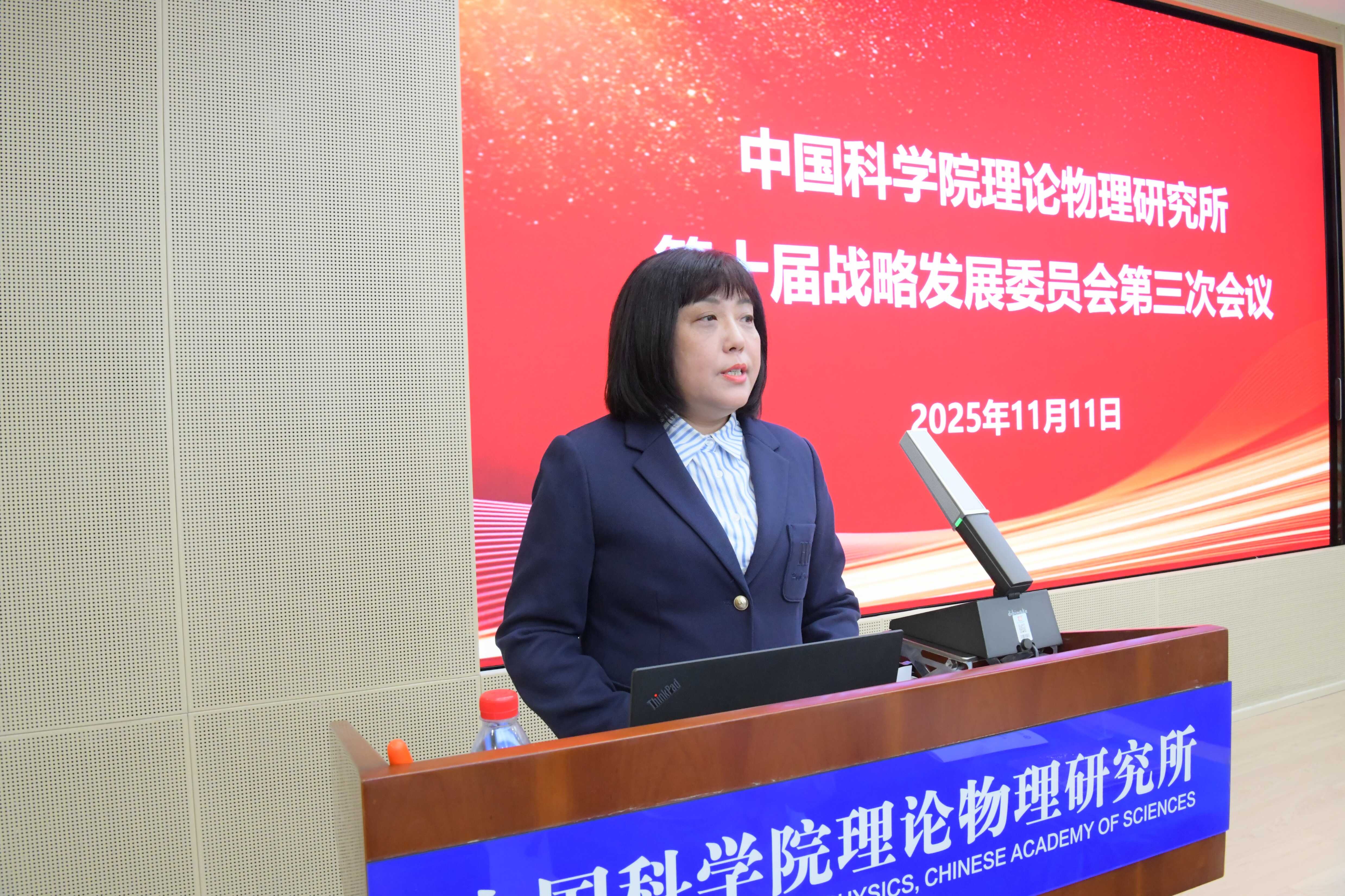 樊志军代表理论物理所对各位委员的到来表示热烈欢迎与衷心感谢。她表示,上午举办了彭桓武先生诞辰110周年纪念大会暨学术思想研讨会,作为“两弹一星”元勋、新中国理论物理事业奠基人及理论物理所首任所长,彭先生的科学精神与爱国情怀始终指引着研究所的发展。在党的二十届四中全会明确“加快高水平科技自立自强”目标、中国科学院“四个率先”和“两加快一努力”要求进入关键冲刺期的背景下,这次战略发展委员会会议意义重大,请各位委员建言献策,共同谋划未来五年理论物理所的发展。