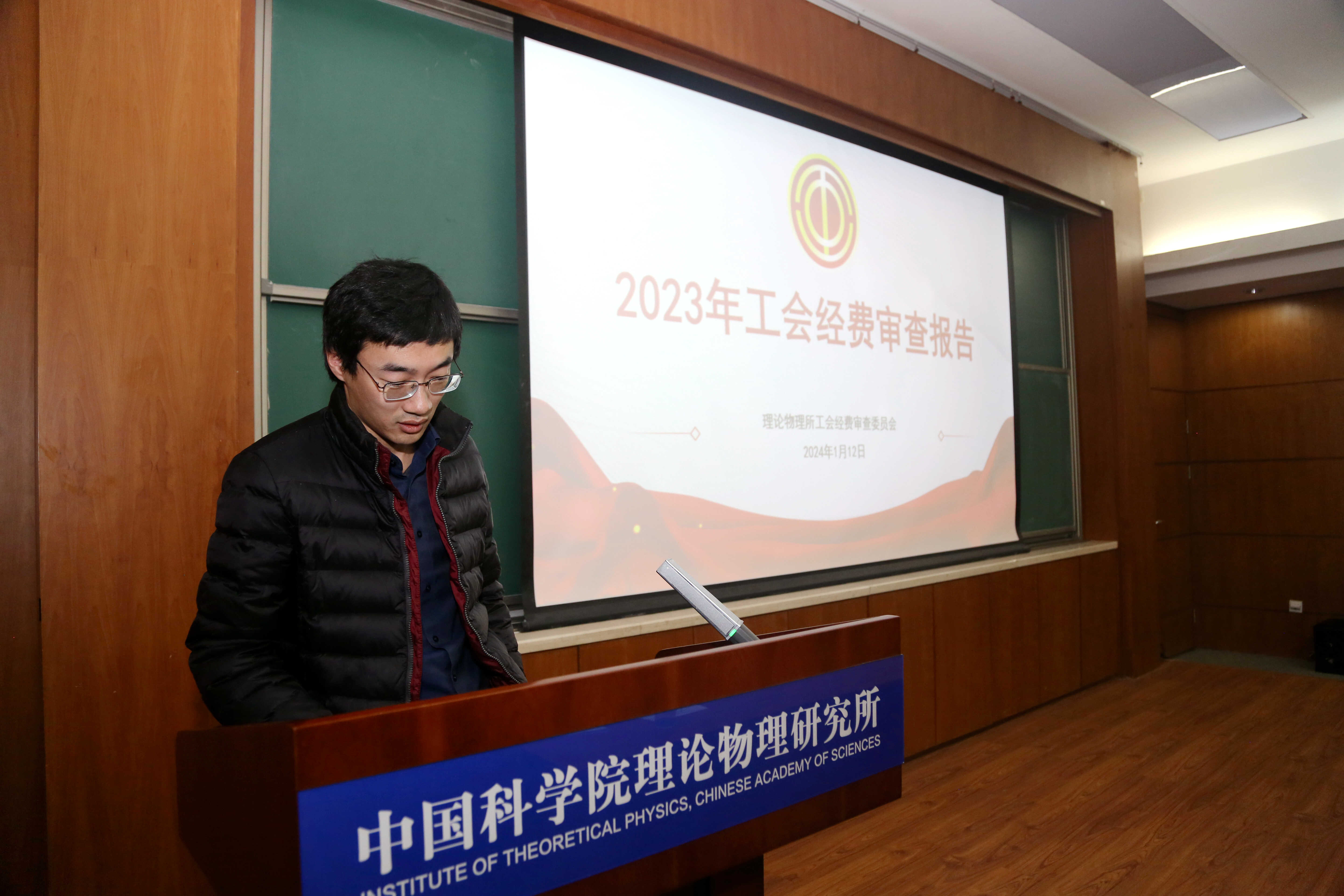 2024年1月12日,理论物理所召开了2024年第一次职工大会全体会议。全所职工、博士后共80余人参加了会议。会议听取了2023年度研究所工作总结及2024年度重点工作的报告、2023年度职工提案工作报告、2023年度工会工作报告以及工会经费审查工作报告。大会由党委副书记、纪委书记樊志军主持。
