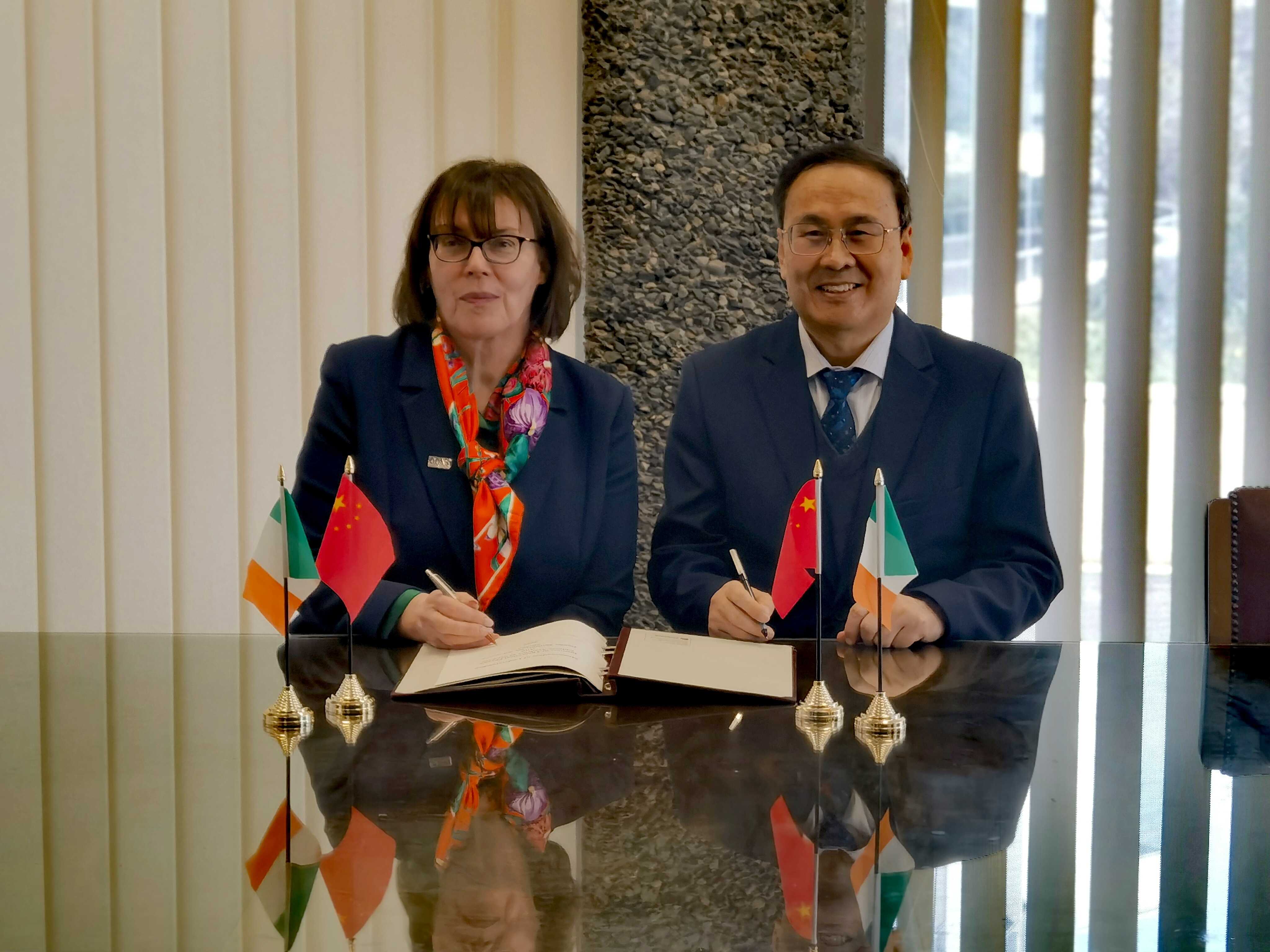 Eucharia Meehan博士对到场的各方表达了热烈欢迎,并简要介绍了都柏林高等研究院的历史。苏刚和Eucharia Meehan分别代表双方签署了合作备忘录。合作备忘录明确双方未来三年在科学研究、学术交流和人才培养等方面开展全面合作,并为深化合作提供保障。