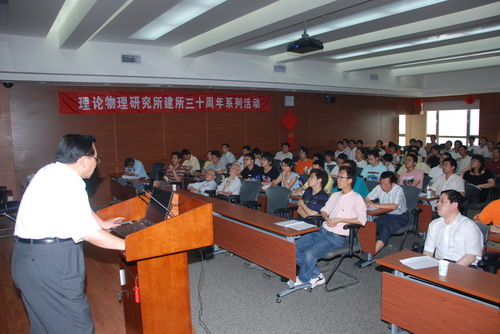 报告会由理论物理所所长吴岳良院士主持,欧阳钟灿院士、何祚庥院士、戴元本院士、陈晓松副所长等出席报告会。