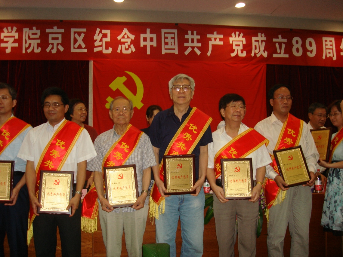 在庆祝中国共产党成立89周年之际,经我所各党支部委员、党委委员组成的推荐小组推荐,京区党委组织评选,我所苏肇冰院士被授予“优秀共产党员”荣誉称号(“关于表彰京区先进基层党组织、优秀共产党员和优秀党务工作者的决定”,京党字〔2010〕17号文件),并于7月1日参加了京区纪念建党89周年暨创先争优表彰大会。 京区先进基层党组织、优秀共产党员、优秀党务工作者先进事迹已在2010年7月1日《科学时报》刊登,同时在中科院图书馆一层展出,希望全所各党支部、广大共产党员向获得表彰的京区先进基层党组织、优秀共产党员和优秀党务工作者学习,结合开展创先争优活动,把干劲聚焦在完成创新三期任务、推动十二五规划和“创新2020”上,围绕中心,服务大局,争创一流。 二〇一〇年七月一日