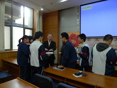 报告结束后,同学们围在Luca教授身边热烈的讨论和提问,Luca教授对同学们表现出来的对科学的热情感到非常的高兴和欣慰,不厌其烦的为大家讲解,并承诺下次如果还能来中国做这样的科普报告,一定保证用中文为大家讲。汇文中学教学处副主任许勇进老师非常高兴能为广大中学生创造这么好的开拓视野和学习书本外知识的机会,激发他们对科学的热情,并期望今后能有更多的机会参与中科院卡弗里理论物理所/理论物理国家重点实验室的拓展项目活动。