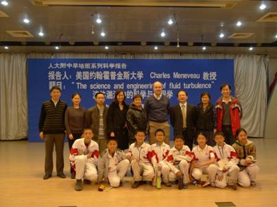 2012年4月1日,在中国科学院卡弗里理论物理研究所、理论物理国家重点实验室、北京青少年科技俱乐部和人民大学附属中学的共同努力下,第二场“中国科学院卡弗里理论物理研究所/理论物理国家重点实验室拓展项目”专题报告会在人大附中成功举行。报告邀请到美国霍普金斯大学Charles Meneveau教授,他为该校早培班300余名师生带来题为“流体湍流中的科学与工程学”的精彩报告。