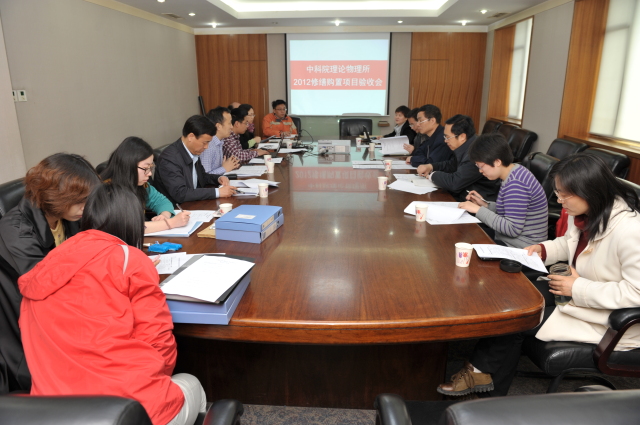 4月26日上午中科院修购专项办组织专家对理论物理所承担的2012年中科院修购专款设备项目进行了现场验收。专家组由缪有贵主任带队,一行5人。研究所党委书记牟克雄、副所长陈晓松、修购专项工作组全体成员参加了会议。