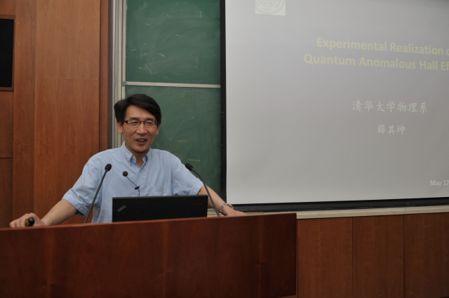 5月17日下午,清华大学物理系薛其坤院士应邀到理论物理所“前沿科学论坛”,作了题为《Experimental Realization of Quantum Anomalous Hall Effect 》的学术报告。报告会由邹冰松所长主持,何祚庥院士、戴元本院士、苏肇冰院士、欧阳钟灿院士、张肇西院士和研究人员及学生约一百多人到会听取了学术报告。