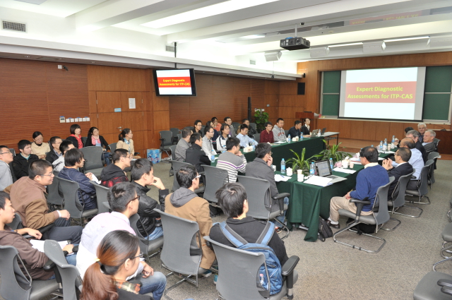 诊断评估预备会上,潘教峰副秘书长向专家组简要介绍中科院的基本情况,详细讲解了此次专家诊断评估的目的和要求,并向各专家组成员颁发了中科院国际评估专家聘任证书。接下来第一天的日程基本为研究所向专家详细讲解研究所的科研状态,包括由邹冰松所长的研究所总体报告,陈晓松副所长的卡弗里国际交流平台的进展报告及杨金民、周宇峰、马建平、周善贵、蔡荣根、李淼、周海军、王延颋、虞跃、易俗等10位研究人员的领域研究进展报告。报告间隙中专家组参观了理论物理研究所新建的高性能计算平台,所图书馆以及《理论物理通讯》编辑部。评估的第二天,专家组分别与研究所的研究人员、研究生以及前两任所长、所学术委员会主任、所战略发展委员会主任、近年新进所研究人员进行了座谈,进一步了解相关情况。