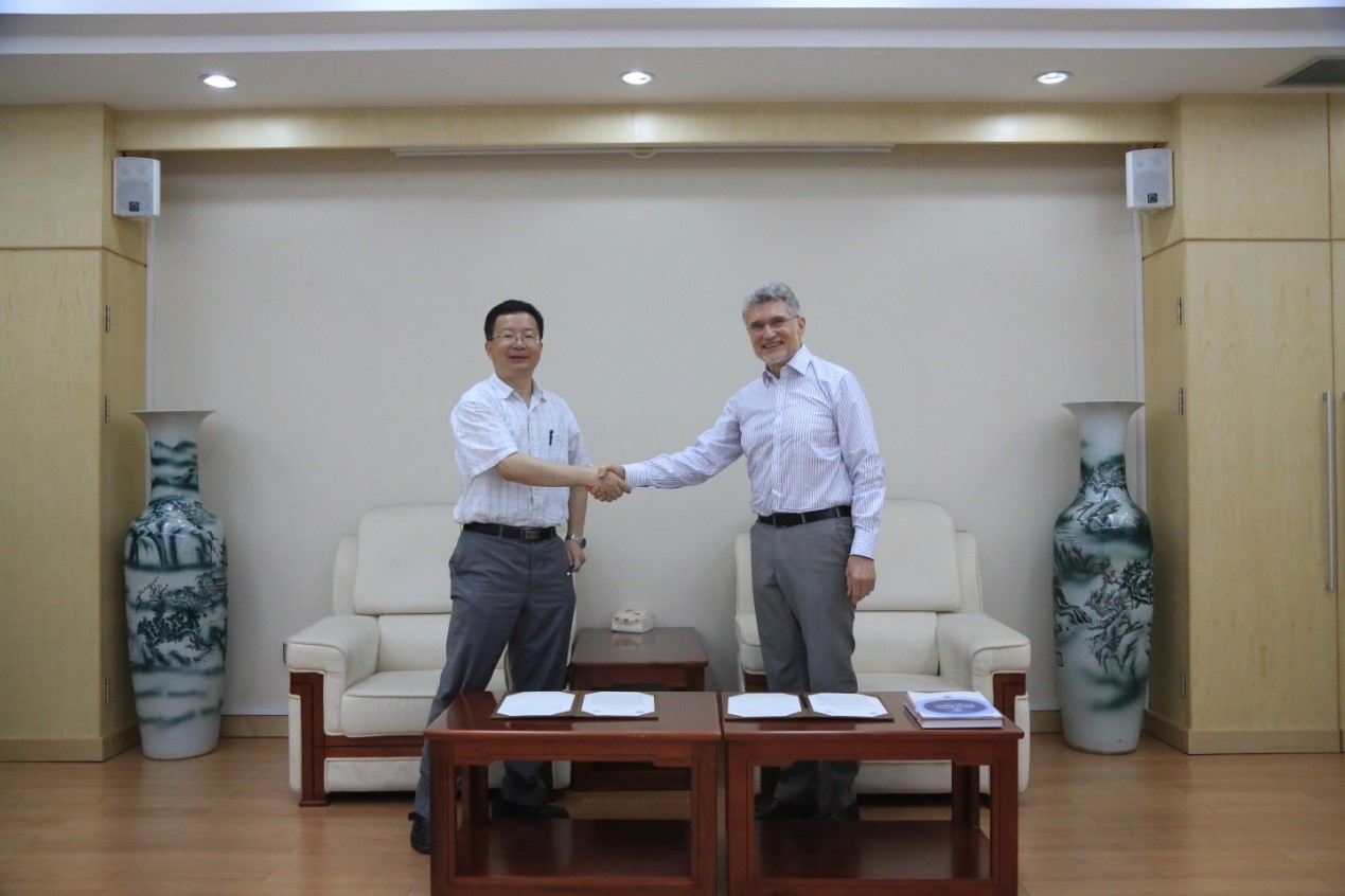 7月31日上午,欧洲理论研究中心(ECT*)主任Wolfram Weise教授来我所访问。邹冰松所长,陈晓松副所长和周善贵研究员会见了Wolfram Weise教授。邹冰松所长首先向 Weise教授介绍了理论物理所科研人员情况,以及开展各类科研活动的情况。Weise教授也详细介绍了ECT*的科研活动和访问科学家计划。为了更好地促进双方合作开展科研活动和推动科研人员之间的互访交流,双方签订了合作协议。 最后,Weise教授还做了题为“Phases of Strongly Interacting Matter”的学术报告。 注:ECT* 全称European Centre for Theoretical Studies in Nuclear Physics and Related Areas , 位于意大利特伦托,主要举办短期研讨会、国际会议和开展访问科学家计划。