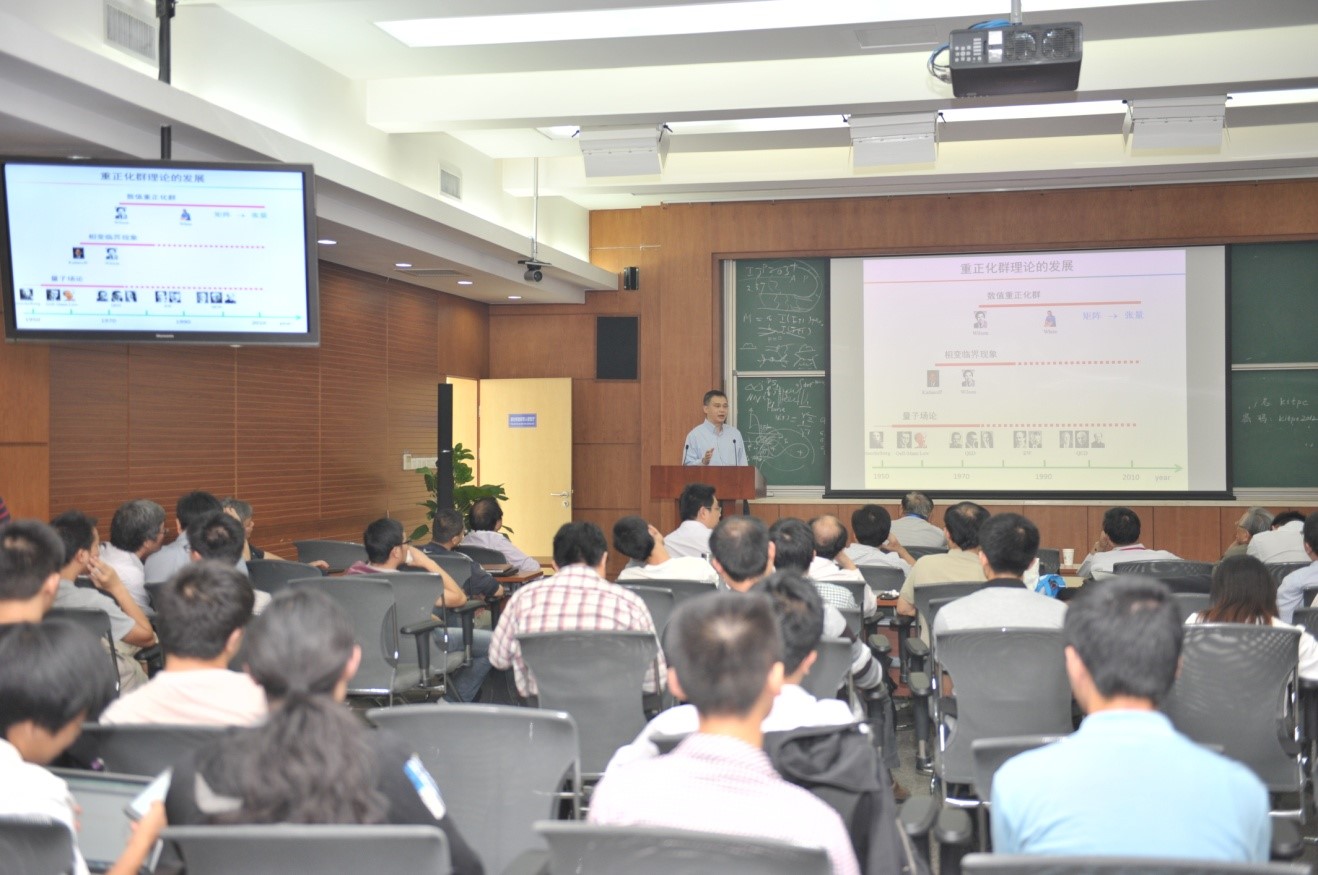 /理论物理国家重点实验室成功举办了题为 “Nambu-Goldstone and Higgs in Particle Physics and in Condensed Matter” 的研讨会。来自北京大学、清华大学、中国科学技术大学、中国科学院大学、北京师范大学、浙江大学、南京大学、南开大学、中科院物理所、高能所以及北京计算科学研究中心等近30所高校和研究机构的130余位科研人员参加了此次研讨会。戴元本、何祚庥、欧阳钟灿、苏肇冰、孙昌璞、向涛、于渌、张肇西、张宗烨、赵光达院士参加了此次研讨会。