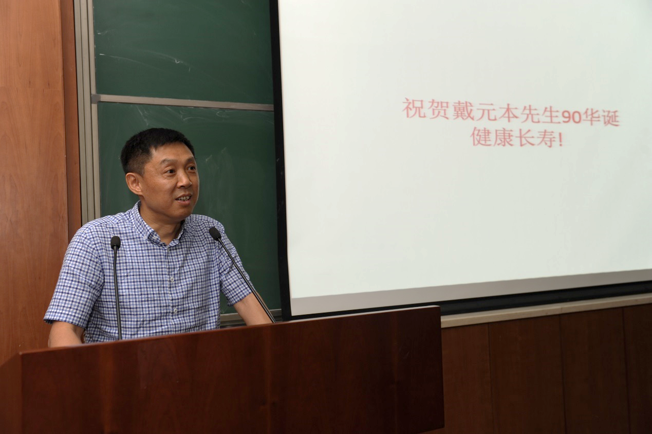 戴元本先生的母校南京大学代表,物理学院院长李建新教授介绍了戴先生与南京大学的渊源,并代表南京大学恭祝戴先生九十华诞。戴先生曾经担任过客座教授的河南师范大学物理学院代表曹俊杰教授也介绍了戴先生对河南师范大学物理学院的帮助。随后,理论物理所的科研人员和所友代表,何祚庥、张肇西、吴咏时、朱重远、欧阳钟灿、吴岳良、毕效军,以及物理所杨国桢院士回忆了与戴元本先生的交往点滴和戴先生对他(们)的帮助。