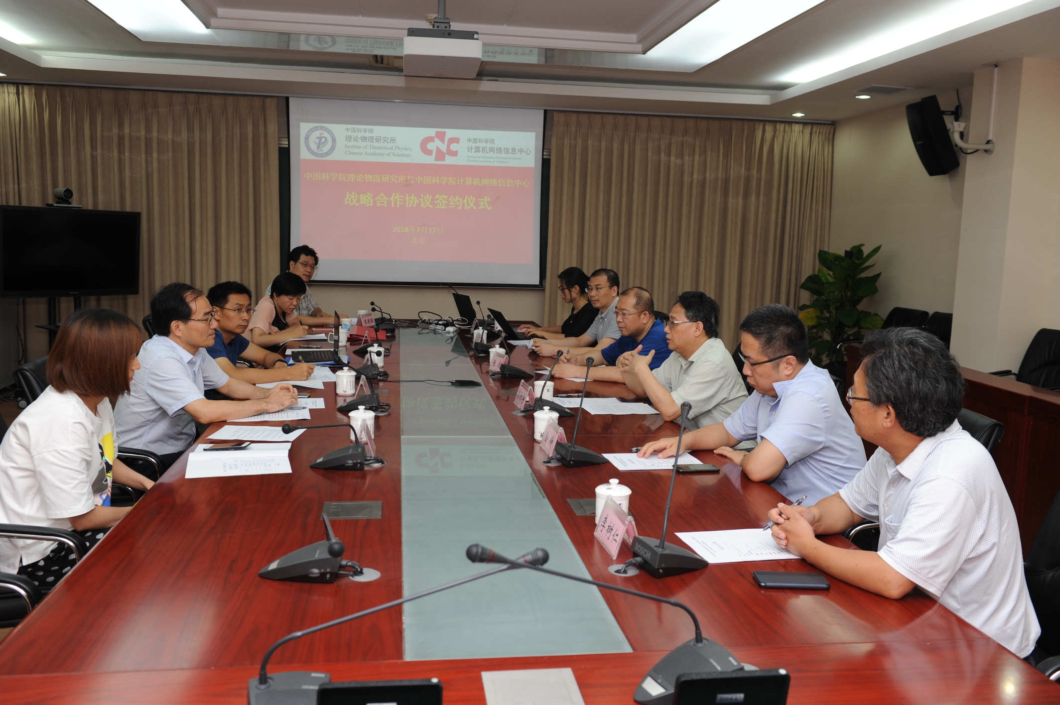 2018年7月17日,理论物理所与中科院计算机网络信息中心战略合作协议在理论物理所签署。理论物理所副所长(主持工作)蔡荣根院士、副所长王延颋研究员、中科院计算机网络信息中心主任廖方宇研究员、业务发展处副处长李树仁、高性能计算部主任金钟研究员等出席签署仪式。签署仪式由理论物理所王延颋副所长主持,计算机网络信息中心廖方宇主任和理论物理所蔡荣根副所长代表双方签署战略合作框架协议。 签约仪式前,蔡荣根副所长带领廖方宇主任一行参观了理论物理所所史展示墙,介绍了理论物理所的历史沿革、在理论物理所工作和学习过的院士、以及理论物理所取得的重要研究成果。 廖方宇主任首先对理论物理所建所40年再次表示祝贺,他表示经过40年的发展理论物理所已成为国内外同行认可的理论物理研究中心,并回顾了他到中科院工作以来与理论物理所的交往历史。他指出我国计算机最早是在“两弹一星”中开始应用的,并介绍了计算机网络信息中心成长、发展、壮大的历程。廖主任介绍了计算机网络信息中心将承担中科院“十三五”信息化规划和建设的情况,“十三五”期间将进一步整合院内外优势科技基础设施,牵头建设“中国科技云”。相信战略合作协议签署后,通过与理论物理所在超级计算资源共享、项目合作、科研信息化、人才培养、技术培训等方面的深入合作,将共同加强科学计算与科学数据在理论物理研究中的应用,助力理论物理研究所产出重大原创性成果。 蔡荣根副所长致欢迎辞,他表示在“两弹一星”元勋彭桓武、周光召等老一辈理论物理学家的前瞻性布局和历任所领导的努力下,理论物理所目前拥有一支高水平的科研队伍,研究方向覆盖了理论物理的各个前沿领域,在学术交流、人才培养和科学研究等各个方面均取得了很好的成绩。近年来,理论物理所引进了一批基础扎实、视野开阔、勤奋上进的年轻人,最近他们做出了一批具有重要国际影响力的研究成果,这些为理论物理所的可持续性发展打下了良好的基础。他指出理论物理的研究总是走在科技的最前沿,理论物理所作为国际化研究所一直坚持开放办所的理念,学术交流频繁,“十三五”期间研究所重点部署了六个研究方向。在数据与计算驱动科学发现的信息化时代,基础科学研究更离不开信息化的支撑,计算模拟已成为与理论、实验并列的第三种研究范式。希望签约后,充分发挥双方的人才优势和资源优势,围绕理论物理前沿重大科学问题和国家战略需求,开展务实合作,在建设科技强国的新征程中贡献自己的力量。 随后,蔡荣根副所长和廖方宇主任代表双方签署战略合作协议。 签约仪式后,双方进行了亲切的座谈,分别回顾了双方战略合作协议的筹备背景、合作计划等情况。大家表示很高兴看到双方签署合作协议,现在国家高度重视基础研究,特别是不久前国务院印发了《关于全面加强基础科学研究若干意见》,更是为基础研究提供了制度层面的支持和保障。借力国家科技政策的东风,以签署战略合作协议为契机,双方通过优势互补、合作共赢,发挥双方的人才优势和资源优势,面向宇宙演化、物质结构、生命起源等基础前沿领域进行合作,开展相关算法研究,开发理论物理专业软件,探索交叉学科项目合作、人才培养、学术交流和技术服务的长效机制。 理论物理所科研处、人事教育处、科学计算与信息平台办公室等相关负责人参加了签约仪式。