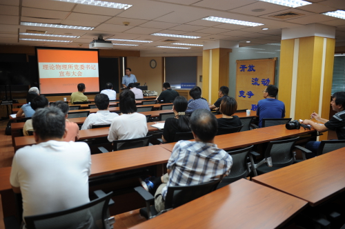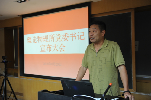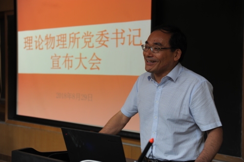 2018年8月29日下午,理论物理所举行党委书记宣布大会。北京分院分党组书记、副院长、京区事业单位党委书记马扬同志主持会议并宣读了任命文件。蔡荣根副所长(主持工作)、王延颋副所长、所学术委员会主任张肇西院士参加会议。