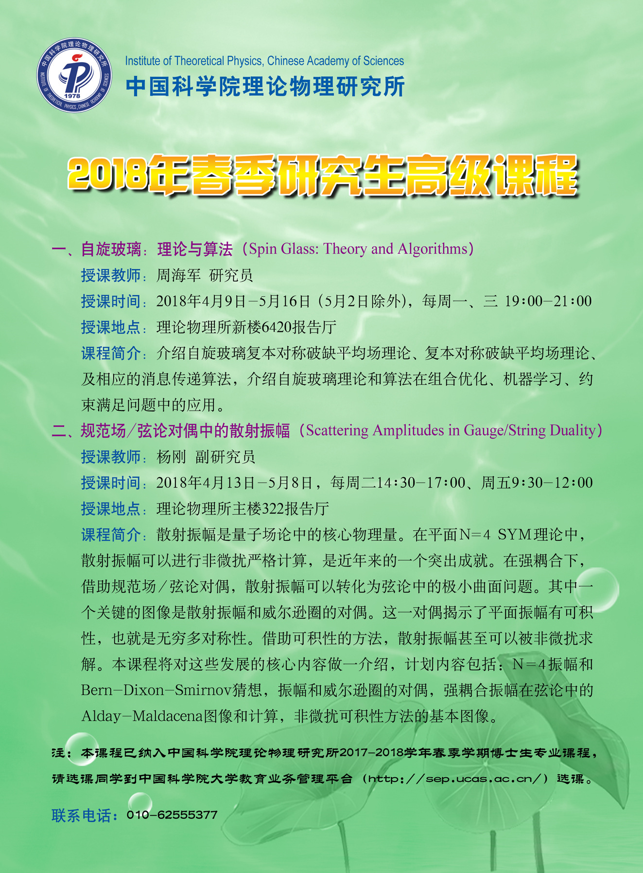 研究生高级课程:自旋玻璃、规范场/弦论对偶中的散射振幅