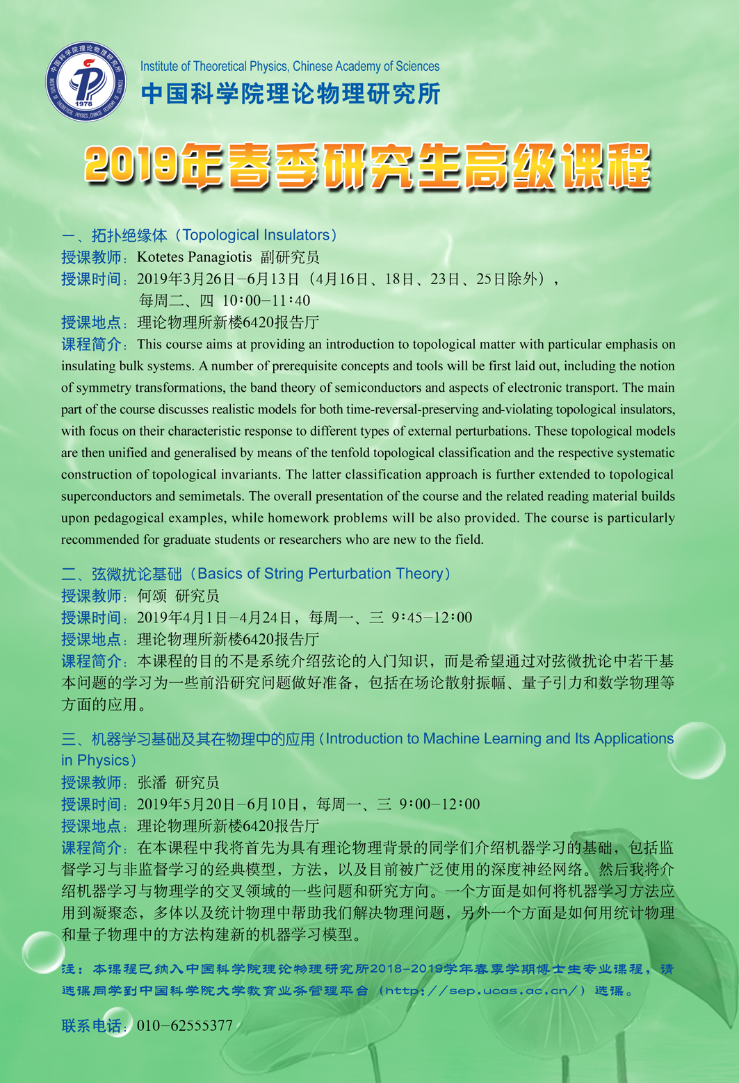 研究生高级课程:拓扑绝缘体、弦微扰论基础、机器学习基础及其在物理中的应用